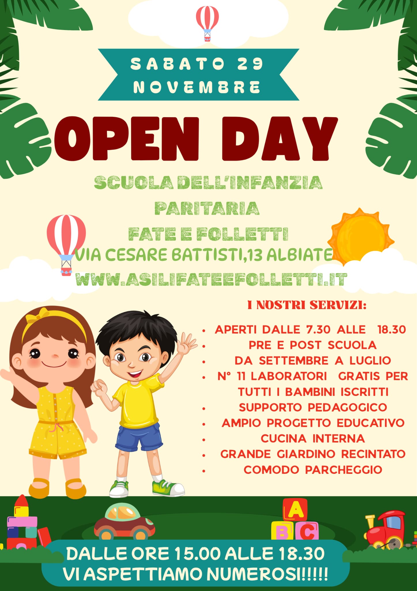 La Scuola dell’Infanzia Paritaria “Fate e Folletti” è aperta da Lunedì a Venerdì dalle h. 9,00 alle h. 16,00 da Settembre a fine Luglio.